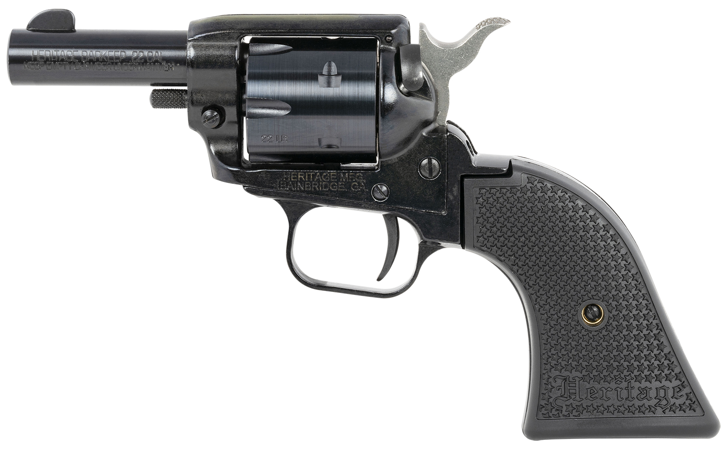 Heritage Mfg BK22B2 Barkeep 22 LR 6 Shot, 2.68″ Black Oxide Steel Barrel, Black Oxide Zinc Alloy Frame, Black Oxide Cylinder, Black Laminate Grip, Manual Safety, Exposed Hammer