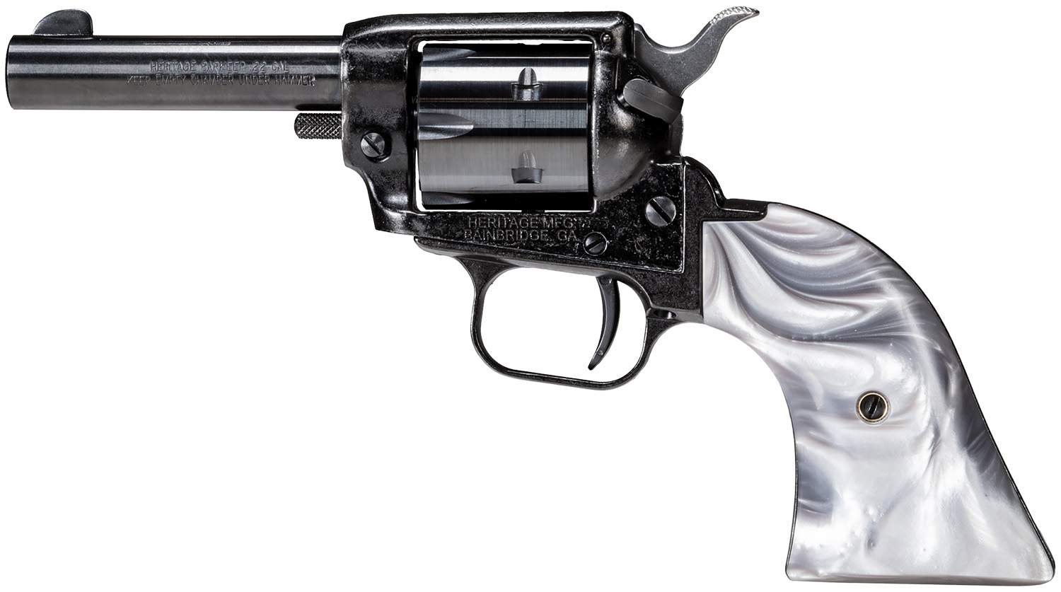 Heritage Mfg BK22B3GPRL Barkeep 22 LR 6 Shot, 3″ Black Oxide Steel Barrel, Black Oxide Zinc Alloy Frame, Black Oxide Cylinder, Gray Pearl Grip, Manual Safety, Exposed Hammer
