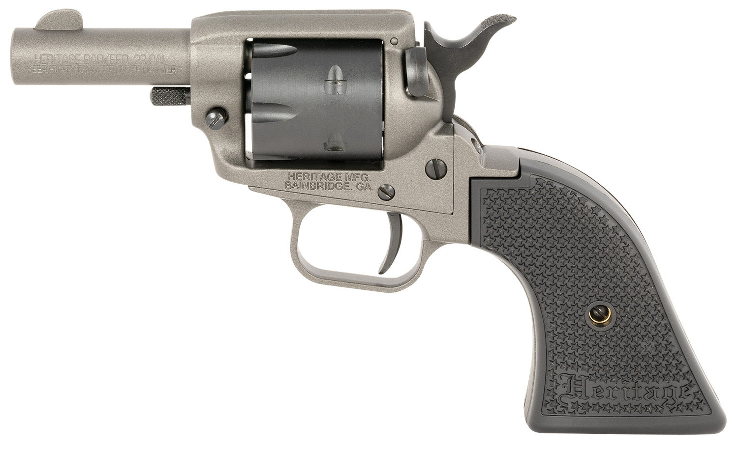 Heritage Mfg BK22C2 Barkeep 22 LR 6 Shot 2.68″ Tungsten Gray Cerakote Barrel, Tungsten Gray Cerakote w/Black Accents Frame, Black Cerakote Cylinder, Black Star Polymer Grips