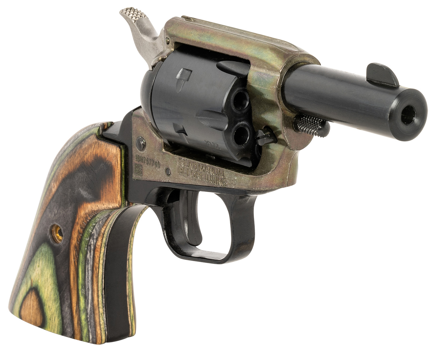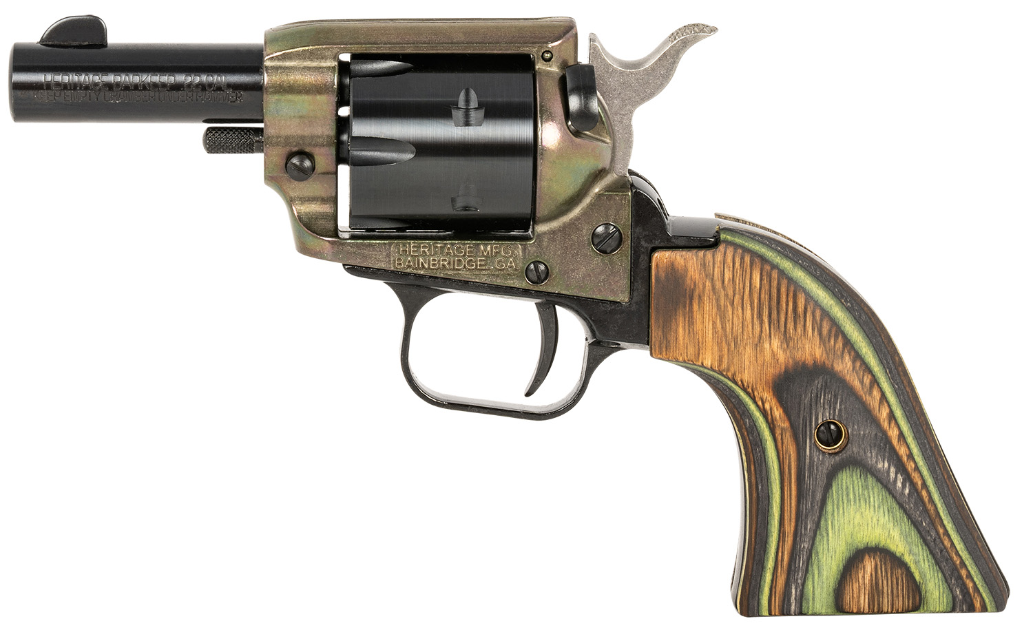Heritage Mfg BK22CH2 Barkeep 22 LR 6 Shot, 2.67″ Black Oxide Steel Barrel, Simulated Case Hardened Zinc Alloy Frame, Black Oxide Cylinder, Camo Laminate Grip, Manual Safety, Exposed Hammer
