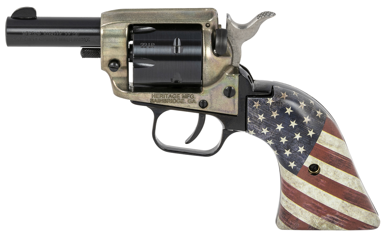 Heritage Mfg BK22CH2USFLAG Barkeep 22 LR 6 Shot 2.67″ Black Oxide Steel Barrel & Cylinder, Simulated Case Hardened Zinc Alloy Frame, US Flag Polymer Grips