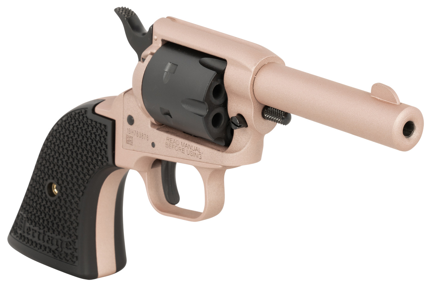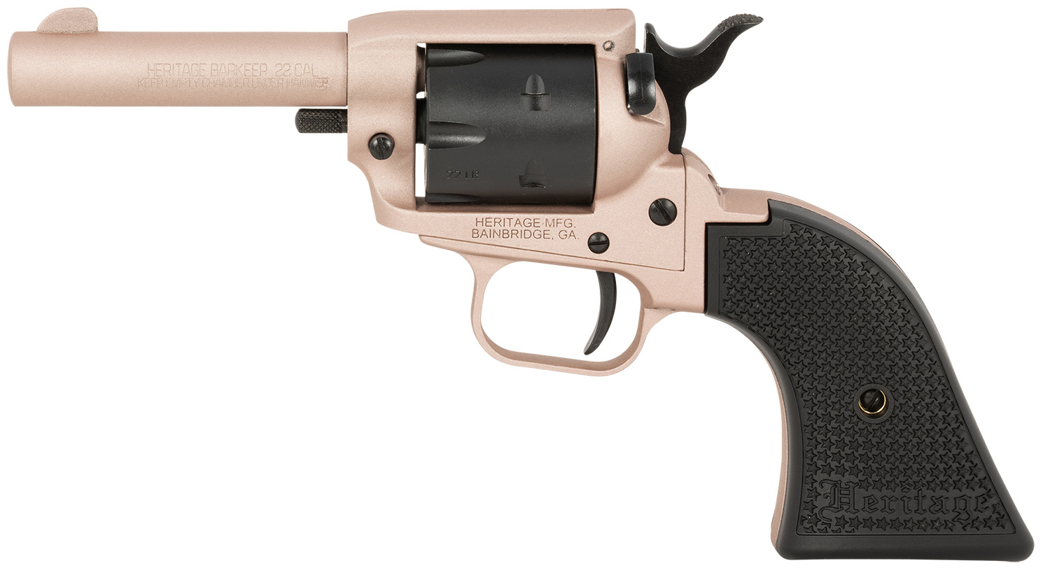 Heritage Mfg BK22Q3 Barkeep 22 LR 6 Shot 3.60″ Rose Gold Cerakote Barrel, Rose Gold Cerakote w/Black Accents Frame, Black Cerakote Cylinder, Black Star Polymer Grips