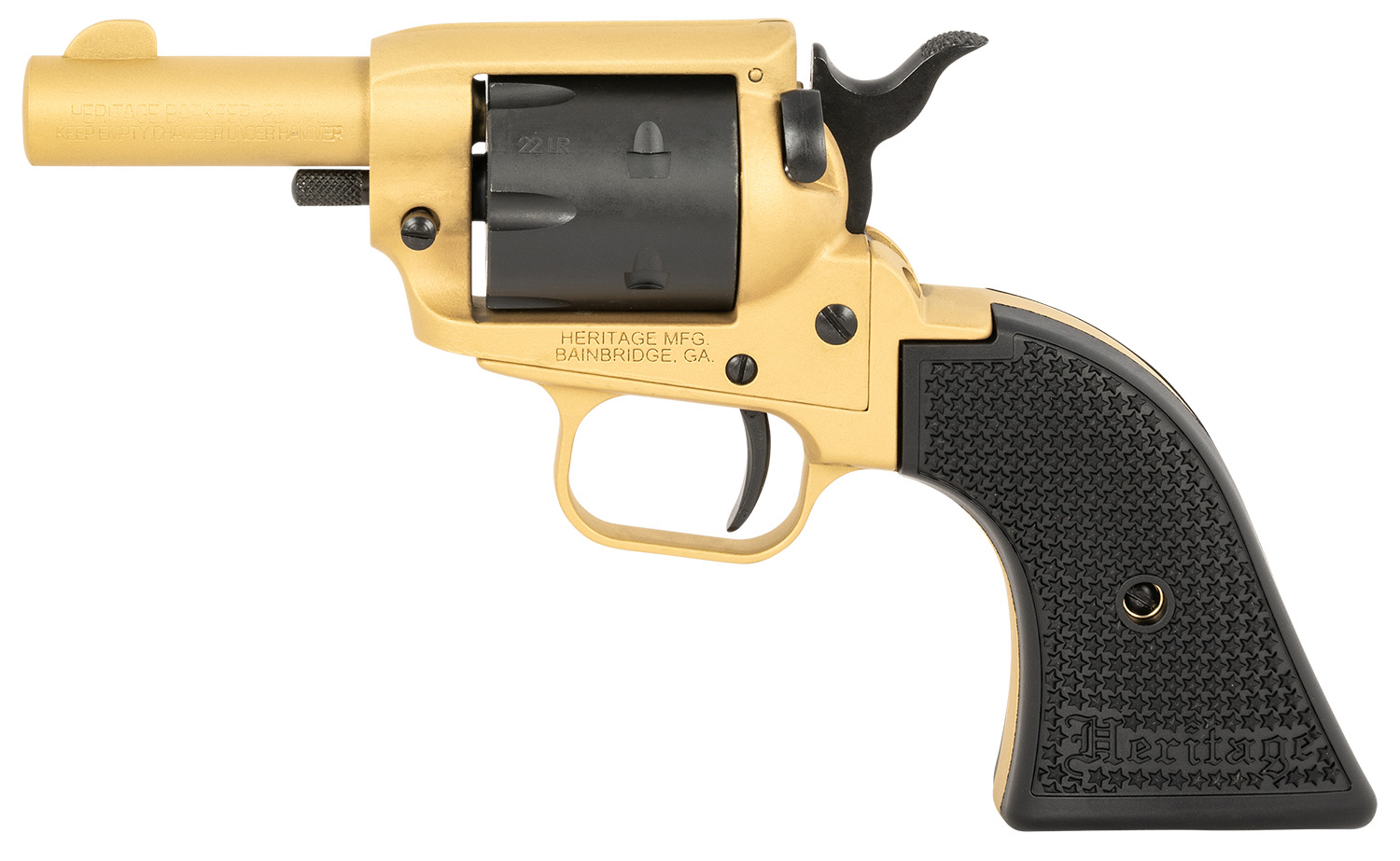 Heritage Mfg BK22SC Barkeep 22 LR 6 Shot 2.68″ Gold Cerakote Barrel, Gold Cerakote w/Black Accents Frame, Black Cerakote Cylinder, Black Star Polymer Grips
