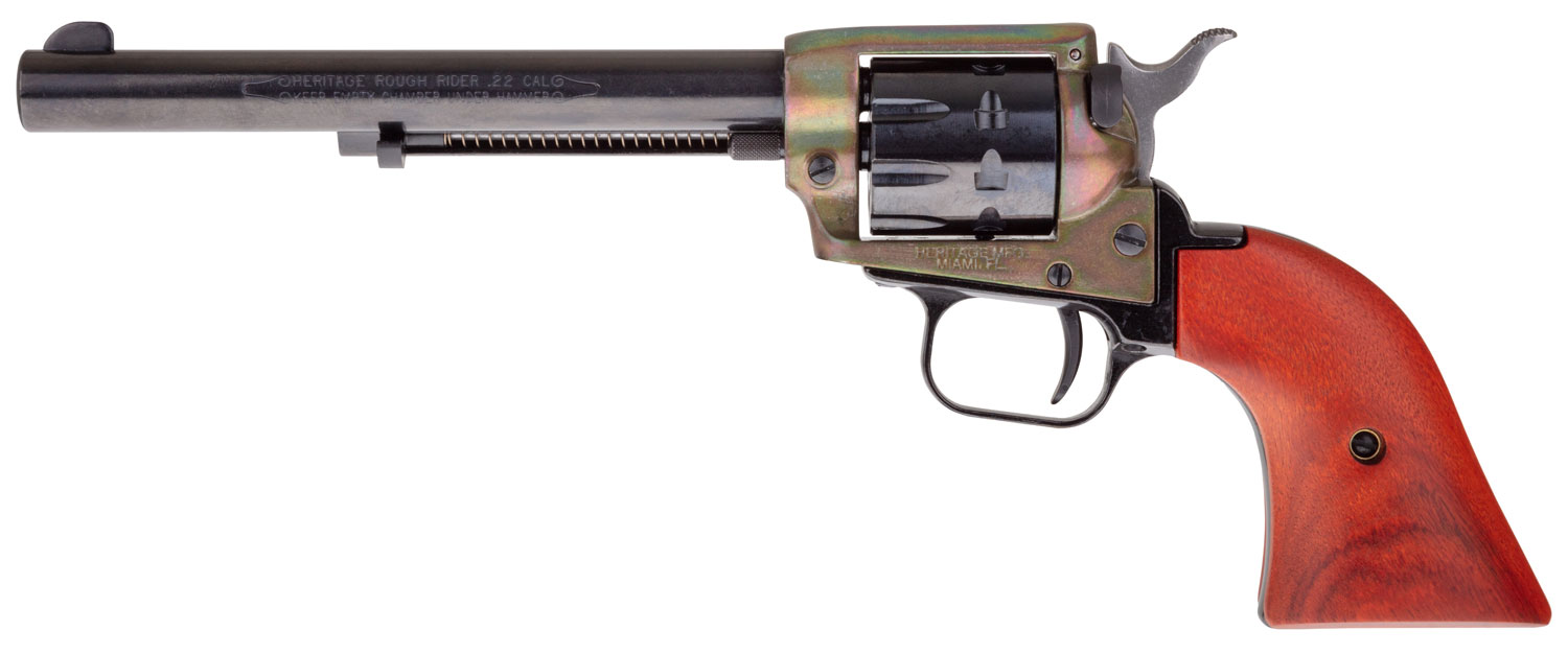 Heritage Mfg RR22999CH6 Rough Rider 22 LR 9 Shot, 6.50″ Black Steel Barrel, Simulated Case Hardened Zinc Alloy Frame, Black Cylinder, Cocobolo Grip, Hammer/Thumb Safety, Exposed Hammer