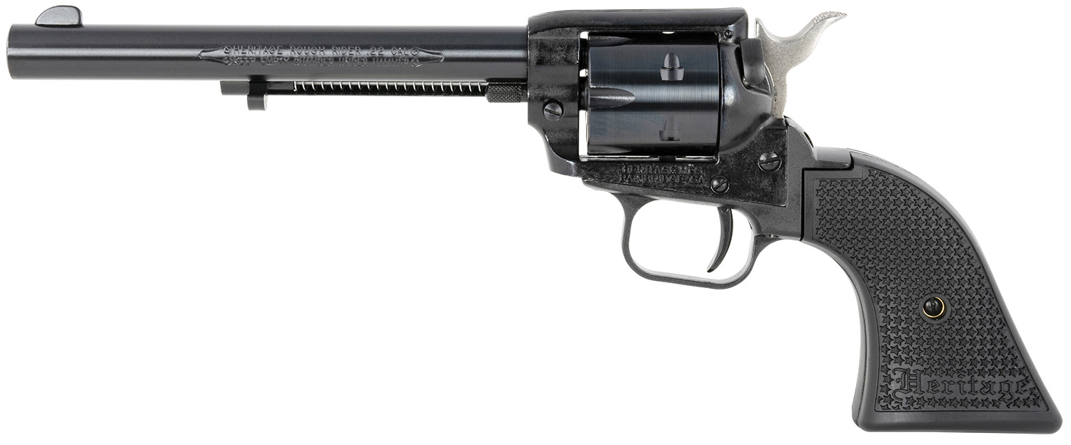 Heritage Mfg RR22MB6PG Rough Rider 22 LR/22 WMR 6 Shot, 6.50″ Black Steel Barrel, Black Cerakote Zinc Alloy Frame, Black Cerakote Cylinder, Black Polymer Grip, Hammer/Thumb Safety, Exposed Hammer