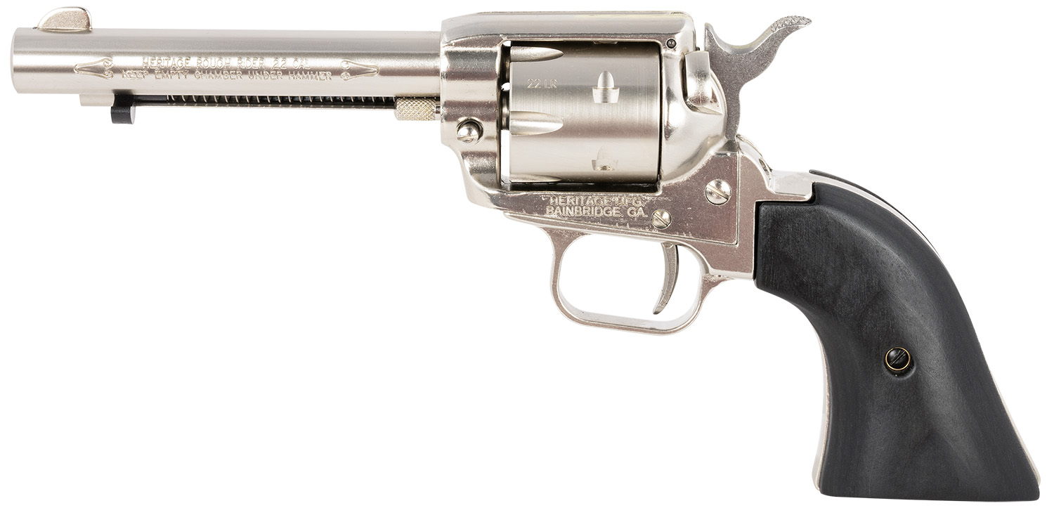 Heritage Mfg RR22NI4BW Rough Rider 22 LR 6 Shot, 4.75″ Black Nitride Steel Barrel, Black Nitride Zinc Alloy Frame, Black Cylinder, Black Laminate Grip, Manual Safety, Exposed Hammer