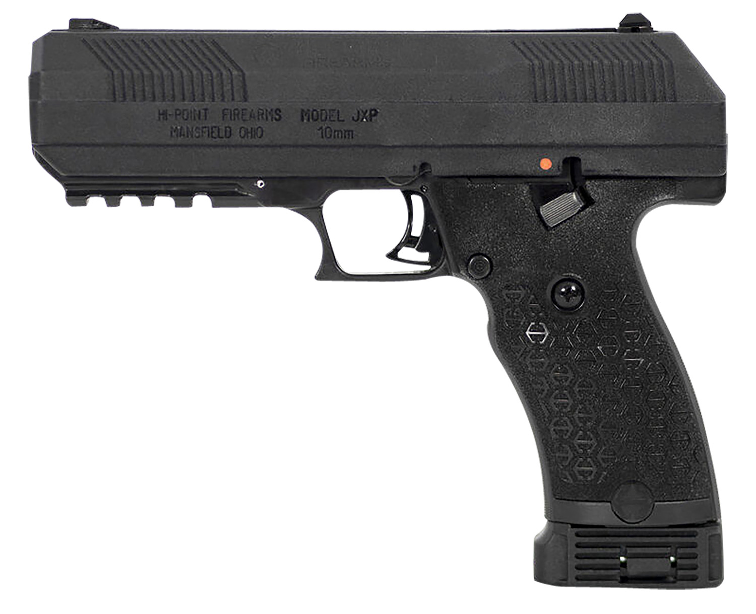 Hi-Point JXP10NTB JXP 10mm Auto 10+1 4.50″ Black Steel Barrel, Black Powder Coated YC9 Styled/Serrated Steel Slide, Black Polymer Frame w/Picatinny Rail, Black Textured Polymer Grip