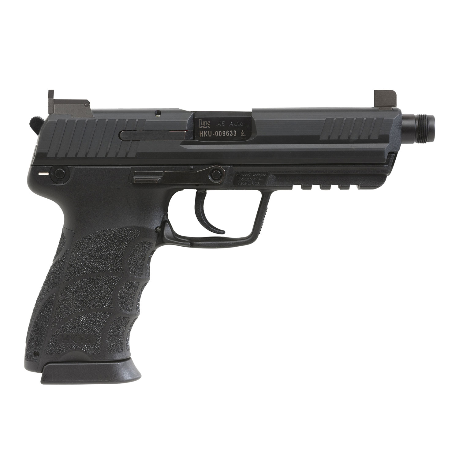 HK 81000032 HK45 Tactical V7 LEM 45 ACP 10+1 5.20″ Black Steel Threaded Barrel, Serrated Steel Slide, Polymer Frame w/Picatinny Rail, Black Polymer Grip, Ambidextrous