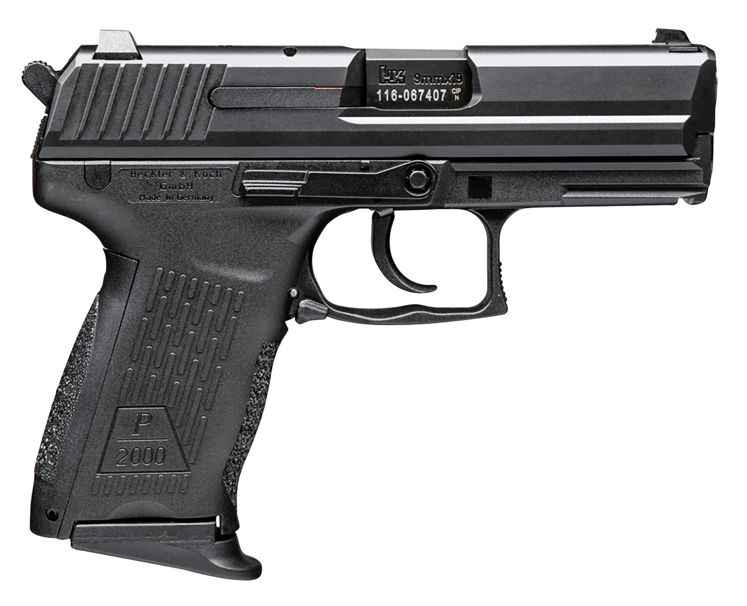 HK 81000044 P2000 V3 Full Size Frame 9mm Luger 10+1, 3.66″ Black Steel Barrel, Serrated Steel Slide, Polymer Frame w/Picatinny Rail, Black Interchangeable Backstrap Grip, Ambidextrous