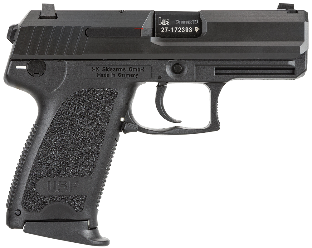 HK 81000333 USP V7 LEM Compact 9mm Luger 13+1 3.58″ Black Polygonal Rifled Barrel, Black Serrated Slide, Black Polymer Frame, Black Polymer Grip, Ambidextrous