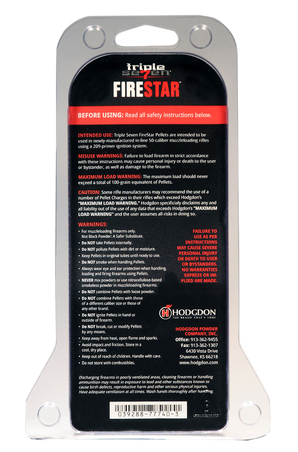 Hodgdon T7FS Triple Seven Firestar Pellets 60 Per Pack 3.39 oz