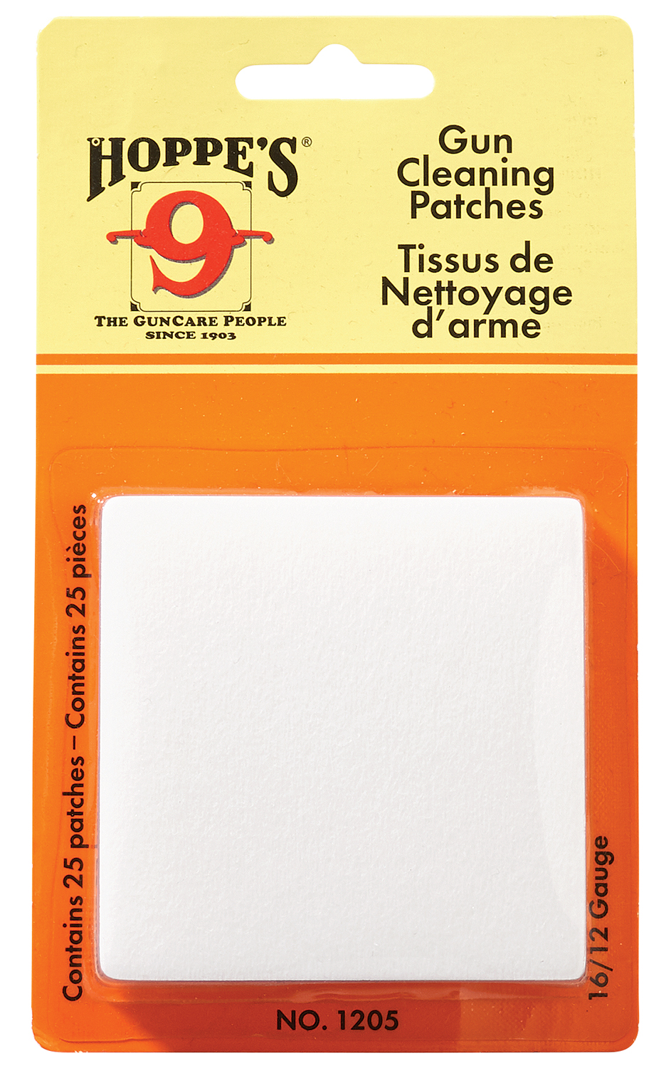 Hoppe’s 1205 Gun Cleaning Patches #5 12 / 16 Gauge Synthetic 25 Per Pack