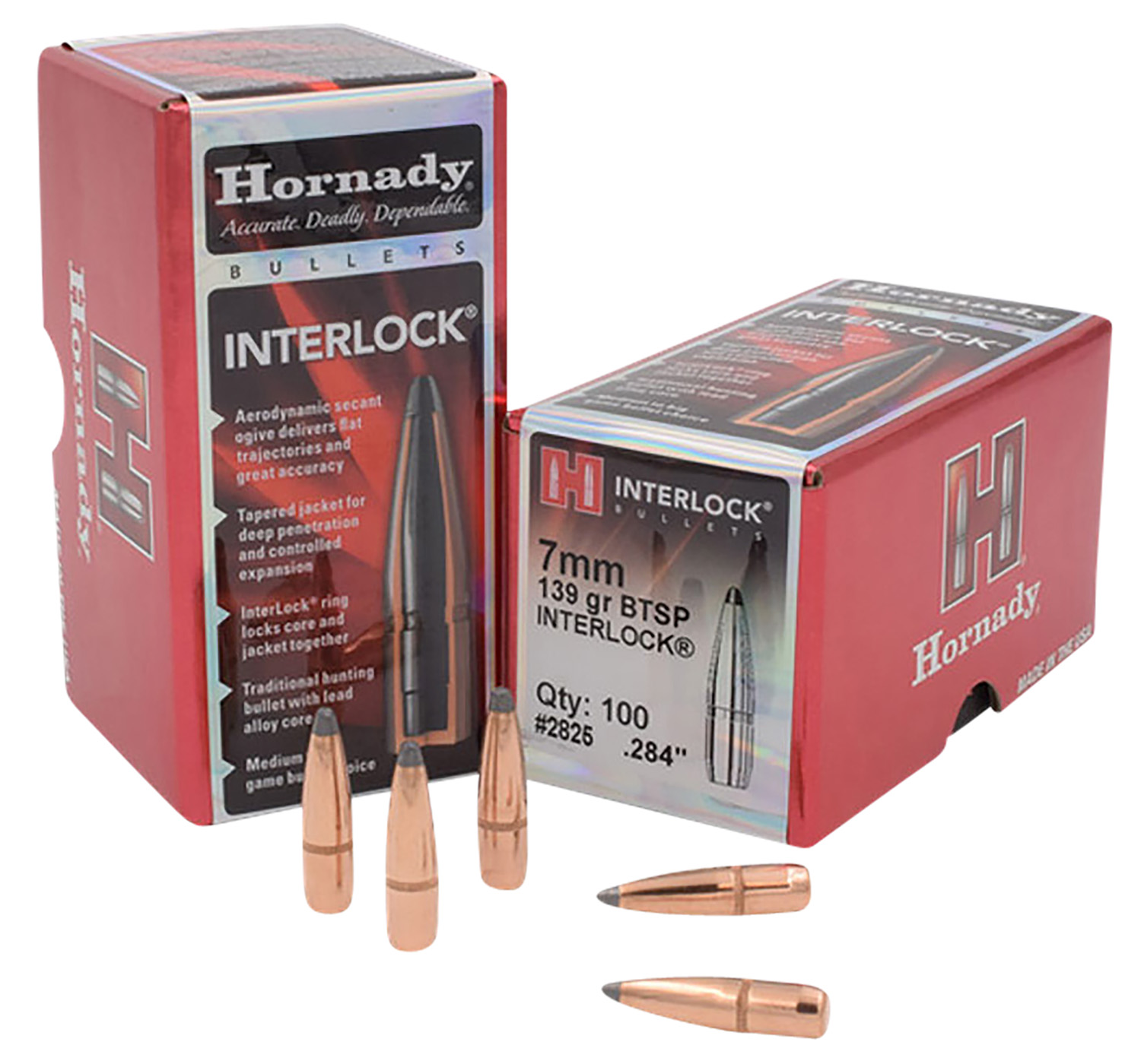 Hornady 2825 InterLock 7mm .284 139 gr Boat Tail Spire Point 100 Per Box/ 25 Case