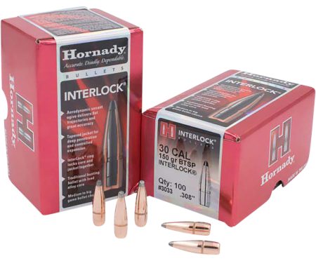 Hornady 3040 InterLock 30 Cal .308 165 gr Soft Point 100 Per Box/ 15 Case