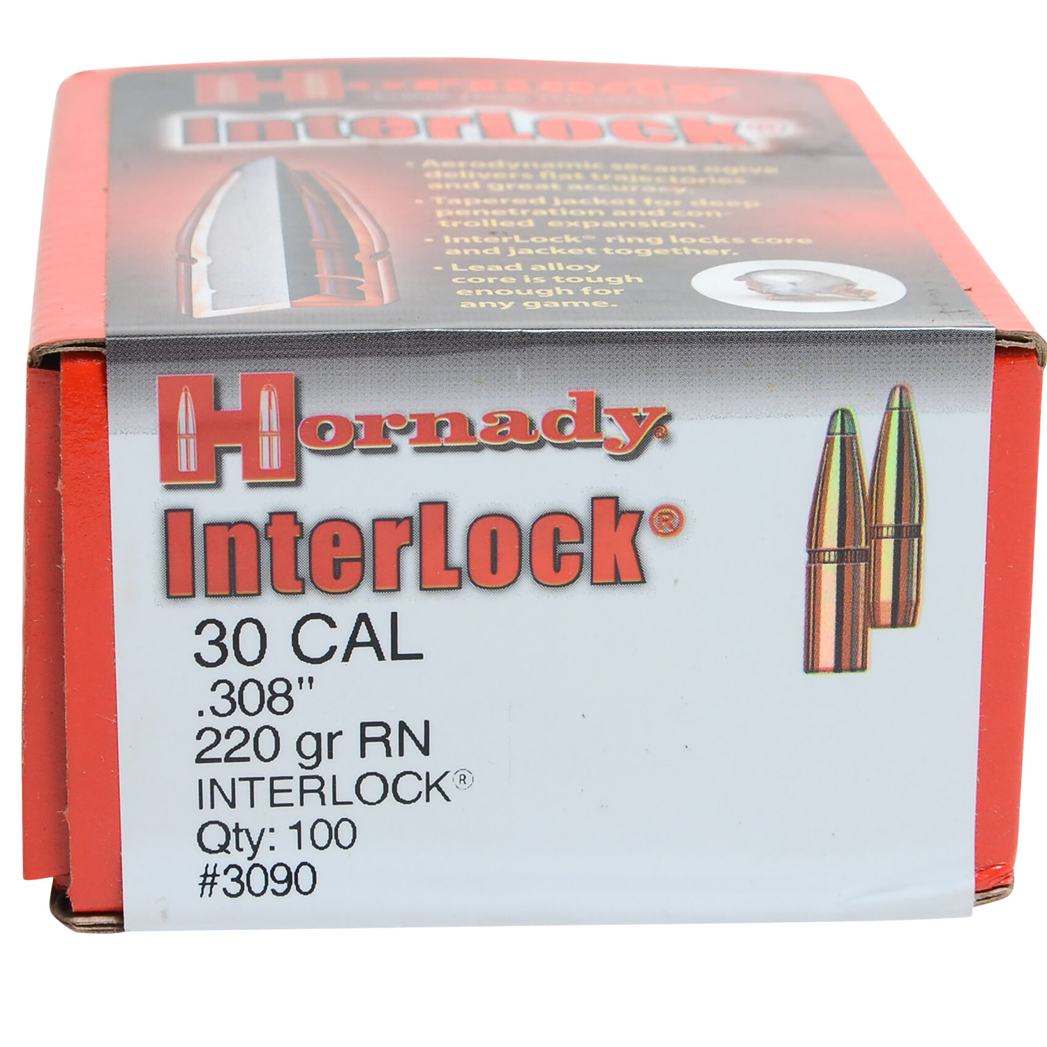 Hornady 3090 InterLock 30 Cal .308 220 gr Round Nose 100 Per Box/ 15 Case