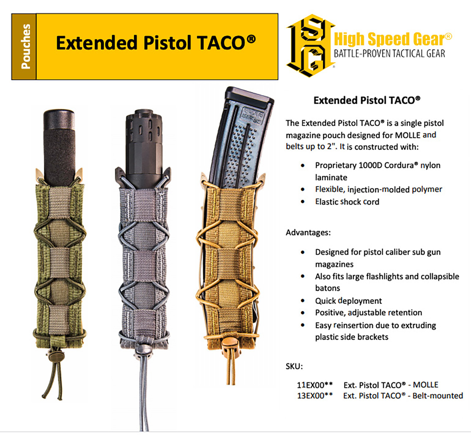 High Speed Gear 11EX00BK TACO Extended Mag Pouch Single Black Nylon MOLLE Belts 2″ Wide Compatible w/ Pistol