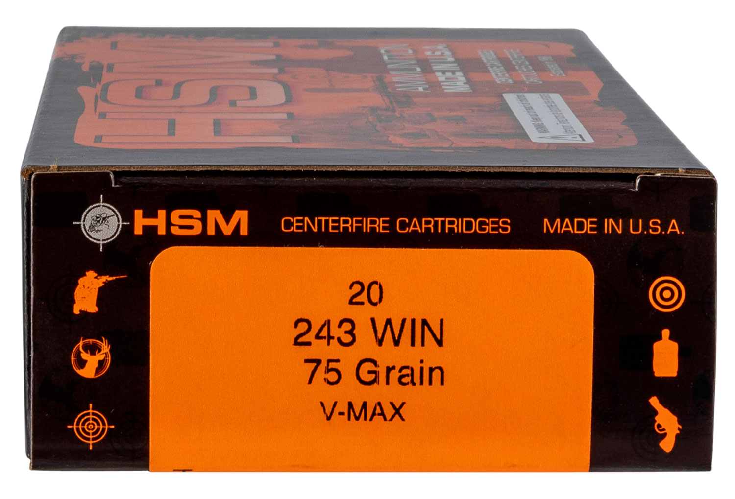 HSM 2432N Varmint 243 Win 75 gr Hornady V Max 20 Per Box/ 25 Case