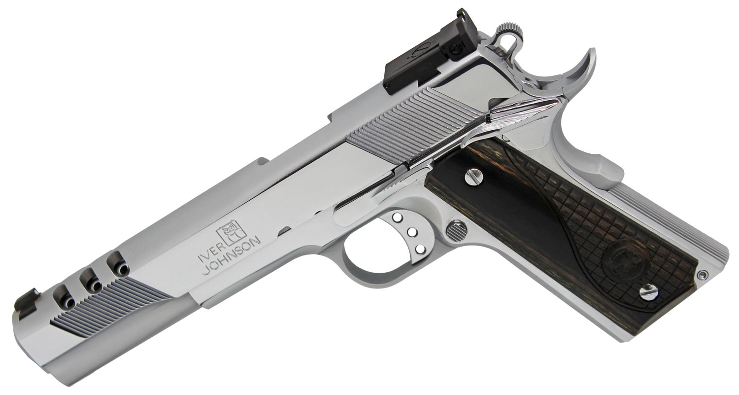 Iver Johnson Arms EAGLEXLC10 1911 Eagle XLC 10mm 6″ 8+1 High Polished Bright Chrome Ported Long Slide Diamondwood Walnut w/Logo Grip Adjustable Sight