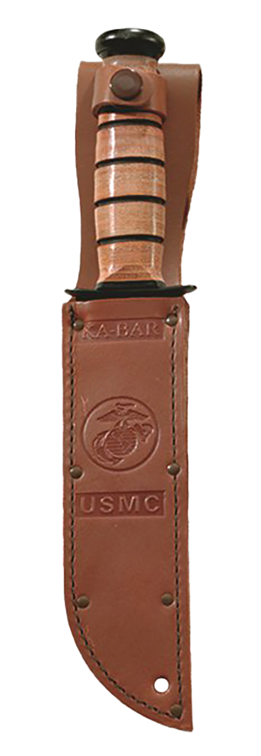 Ka-Bar 1218 USMC Fight/Utility 7″ Fixed Clip Point Part Serrated Black 1095 Cro-Van Blade. Brown Leather Handle. Includes Sheath