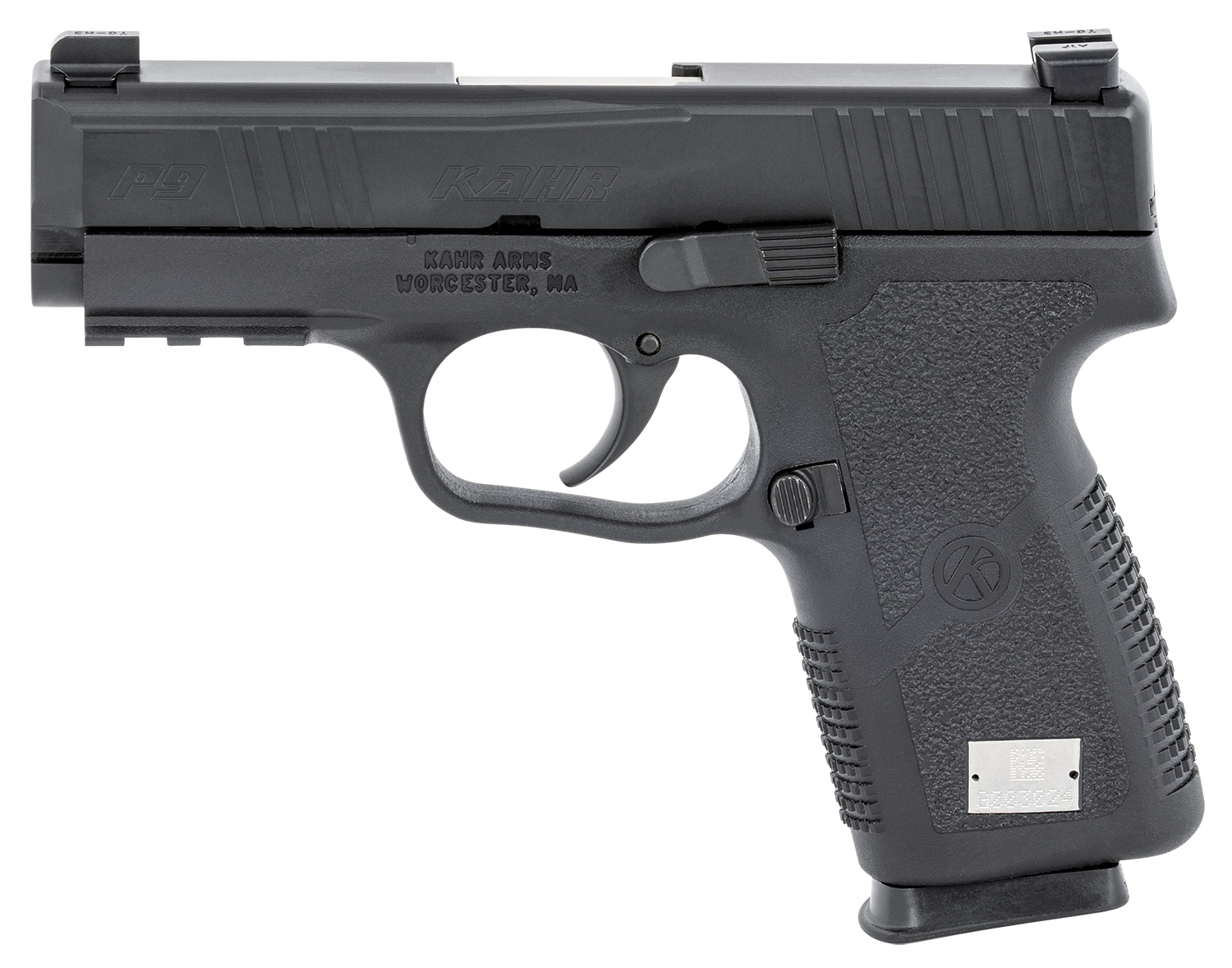 Kahr Arms KP90S94N P9-2 9mm Luger 7+1 3.60″ Barrel, Black Finish Picatinny Rail Frame, Serrated Matte Black Stainless Steel Slide, Textured Polymer Grip & TruGlo Night Sights