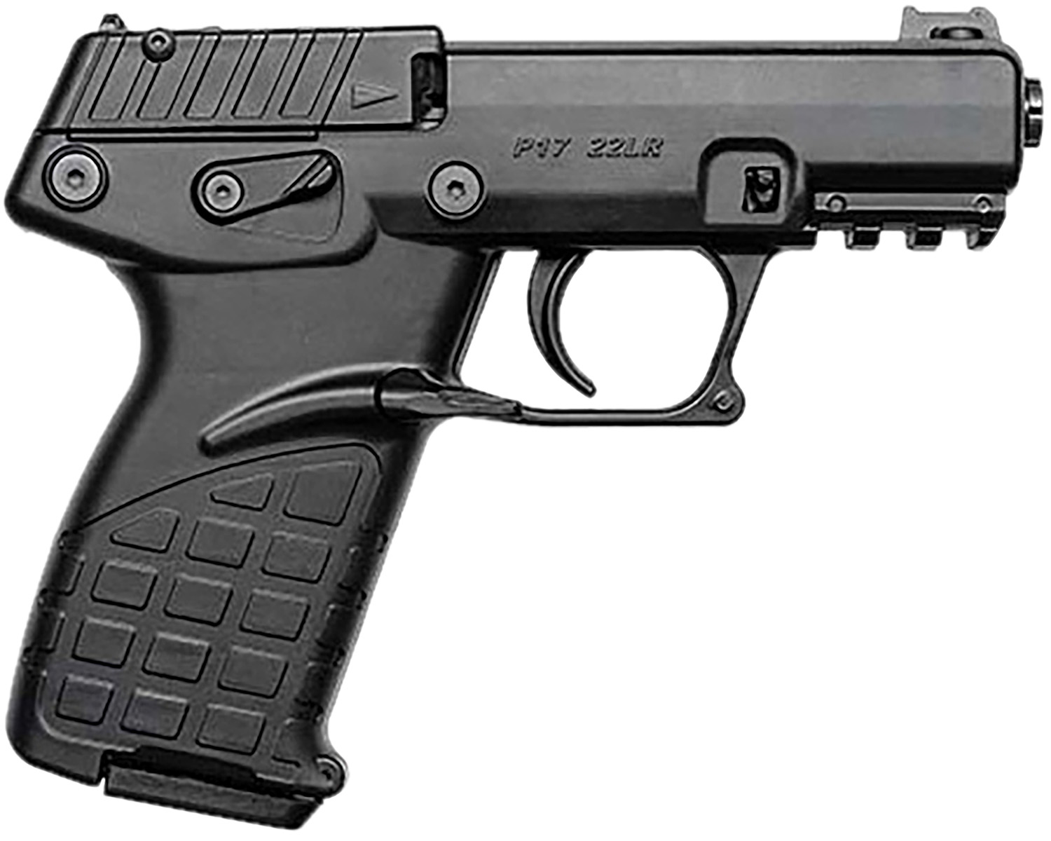 Kel-Tec P17BBLKOR P17 22 LR 16+1 3.80″ Black Threaded Barrel, Black Optic Ready/Serrated Slide, Black Polymer Frame w/Picatinny Rail, Black Polymer Grip