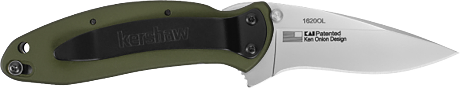 Kershaw 1620OL Scallion 2.40″ Folding Drop Point Plain Bead Blasted 420HC SS Blade Olive Drab Anodized Aluminum Handle Includes Pocket Clip