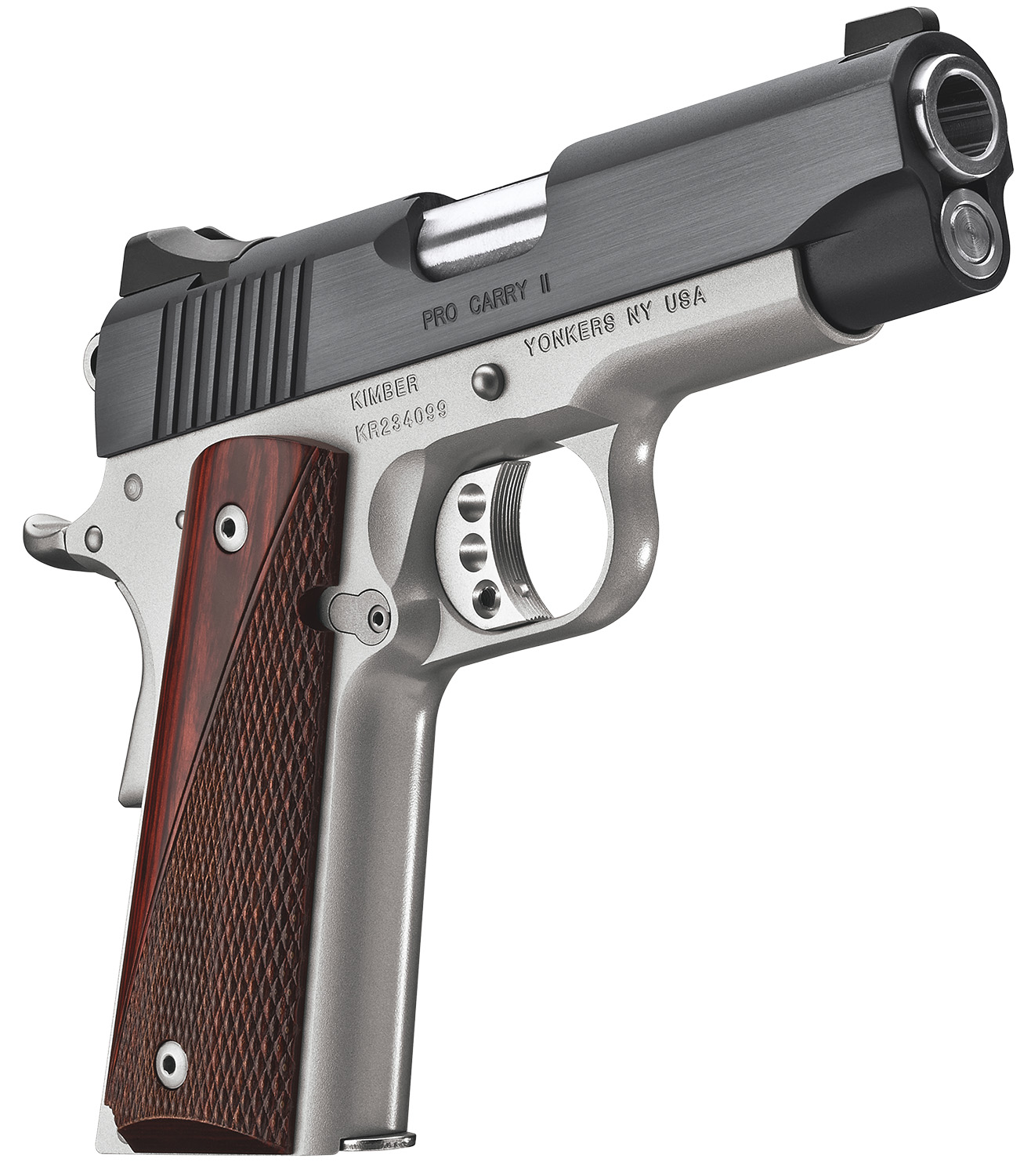 Kimber Mfg.,inc 3200320 Pro Carry II Two-Tone 45 ACP 7+1 4″ Matte black Brush-Polished Stainless Steel Slide Satin Silver Smooth/Checkered Rosewood Grip