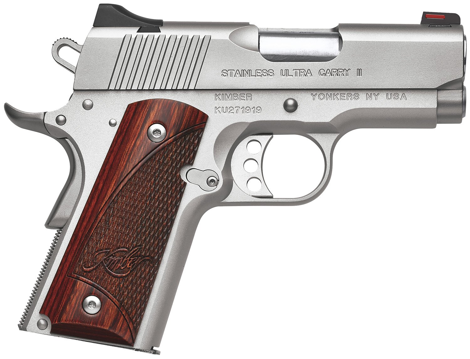 Kimber Mfg.,inc 3200329 Stainless Ultra Carry II 9mm 8+1 3″ Satin Silver Stainless Steel Slide Rosewood w/ Kimber logo Grip