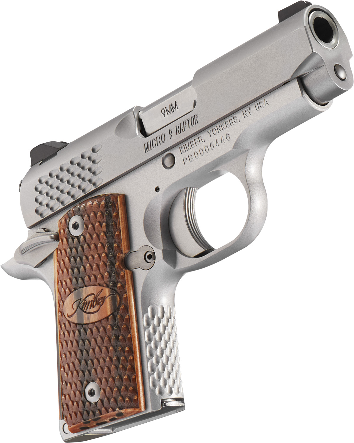 Kimber Mfg.,inc 3300109 Micro 9 Stainless Raptor 9mm 6+1 3.15″ Stainless Steel Slide KimPro Silver Zebrawood with Scale Pattern and Kimber logo Grip