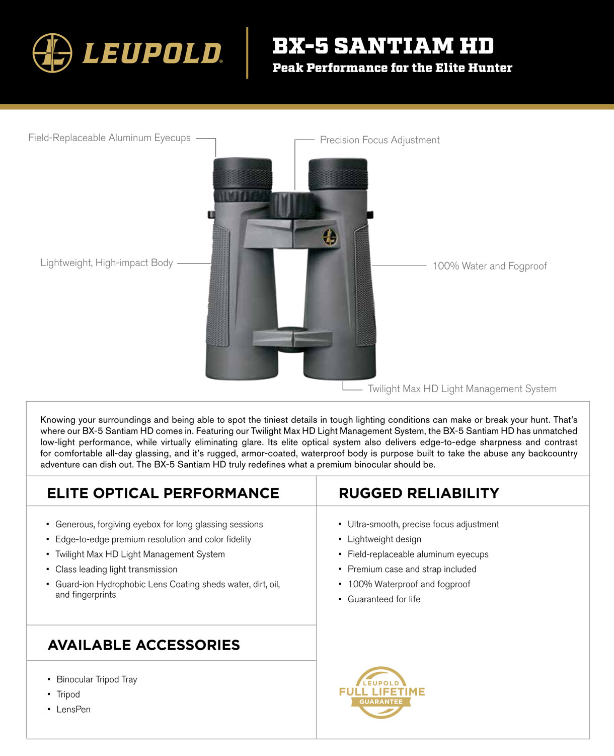 Leupold 175856 BX-5 Santiam HD 12x50mm Roof Prism Shadow Gray Armor Coated