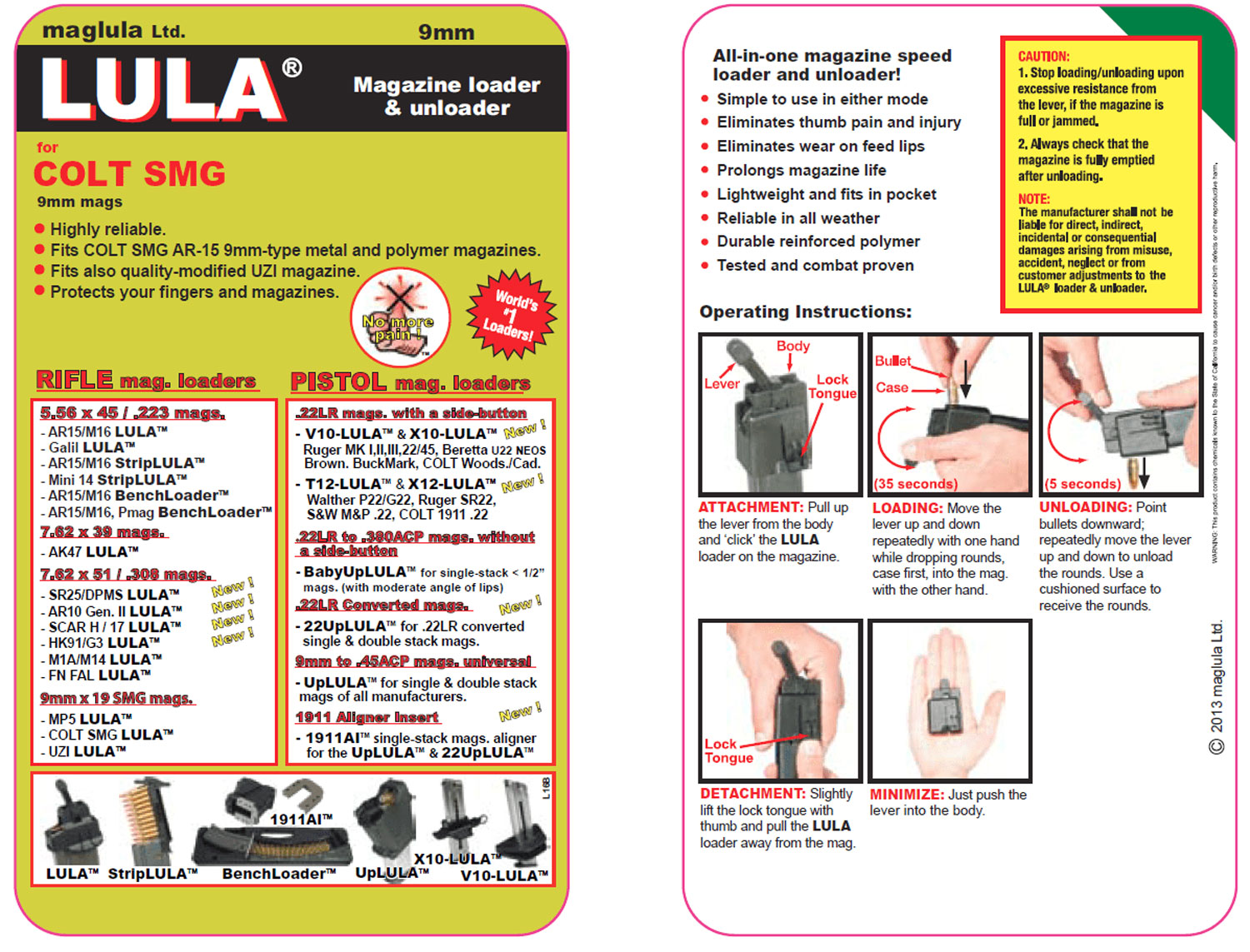 Maglula LU16B LULA Loader & Unloader Made of Polymer with Black Finish for 9mm Luger Colt SMG
