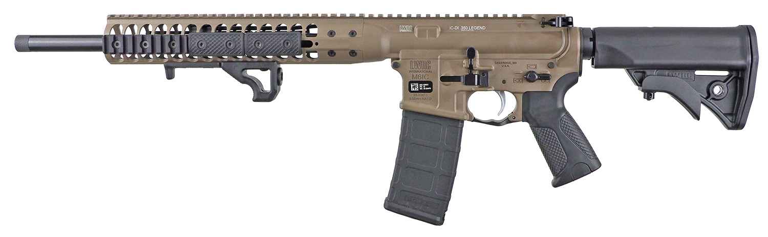 LWRC ICDIR35CK16L Individual Carbine Direct Impingement 350 Legend 5+1 16.10″ Threaded, FDE Ambi Rec/M-Lok Handguard, 6 Position Stock, OEM Ultra Combat Grip, Angled Fore Grip