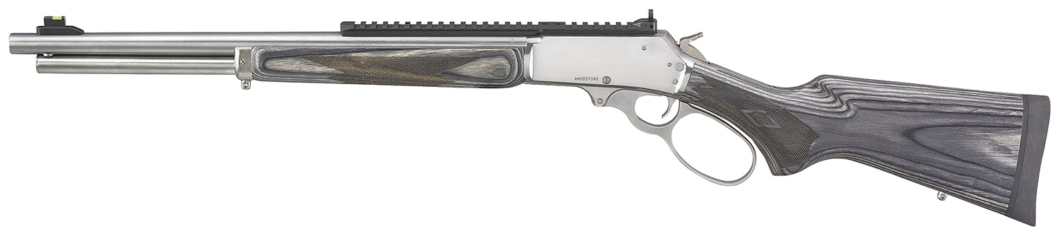 Marlin 70478 1895 Big Loop Full Size 45-70 Gov 6+1 19″ Polished Stainless Steel Threaded Barrel, Polished Stainless Stainless Steel Receiver, Fixed Gray Laminate Stock