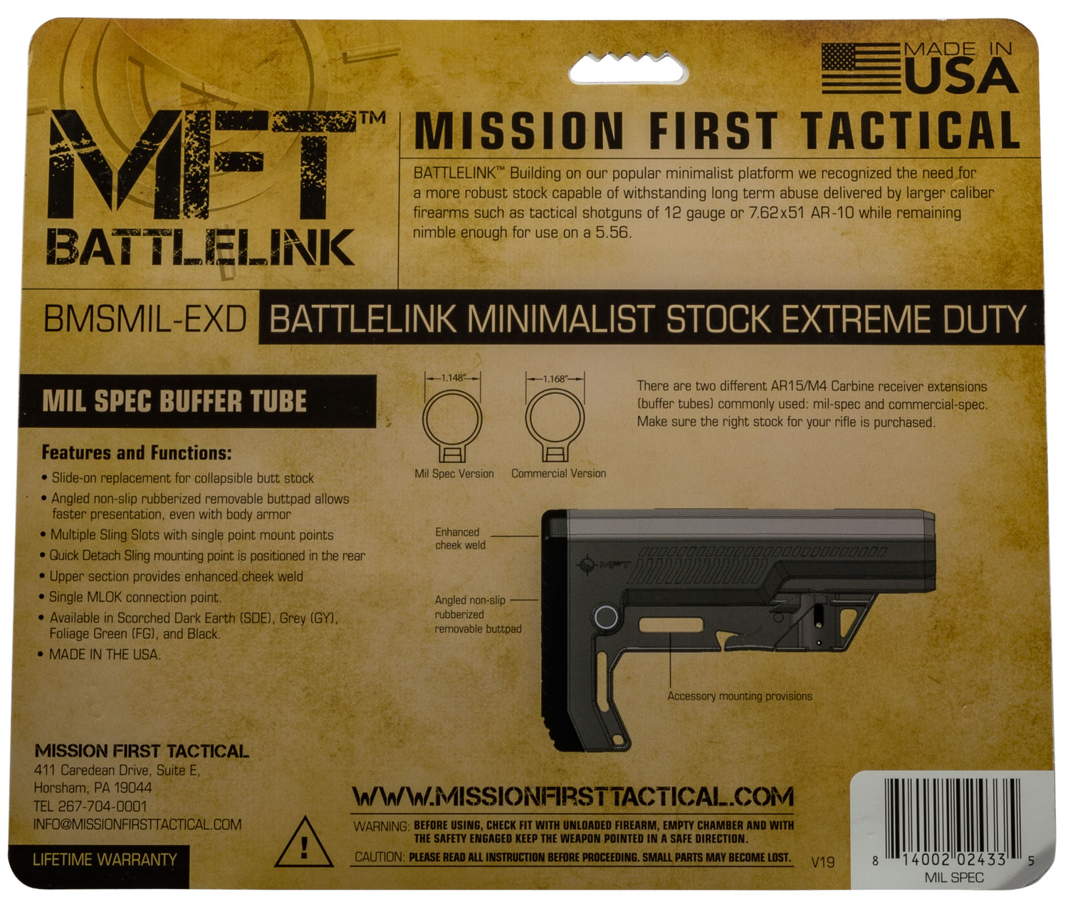 Mission First Tactical BMSMILEXD Battlelink Extreme Duty Minimalist Stock Collapsible Black Synthetic for AR-15, M16, M4 with Mil-Spec Tube (Tube Not Included)