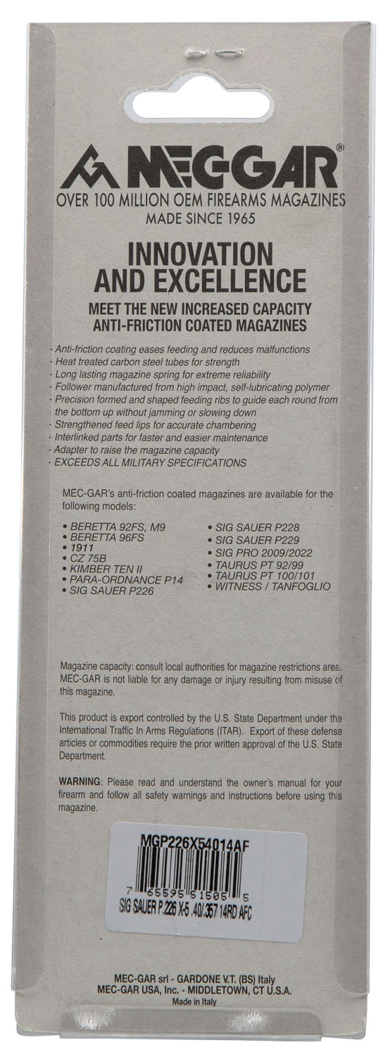 Mec-Gar MG9226X54014AFC Standard 14rd Extended 40 S&W Fits Sig P226 X5 Blued w/Anti-Friction Coating Carbon Steel