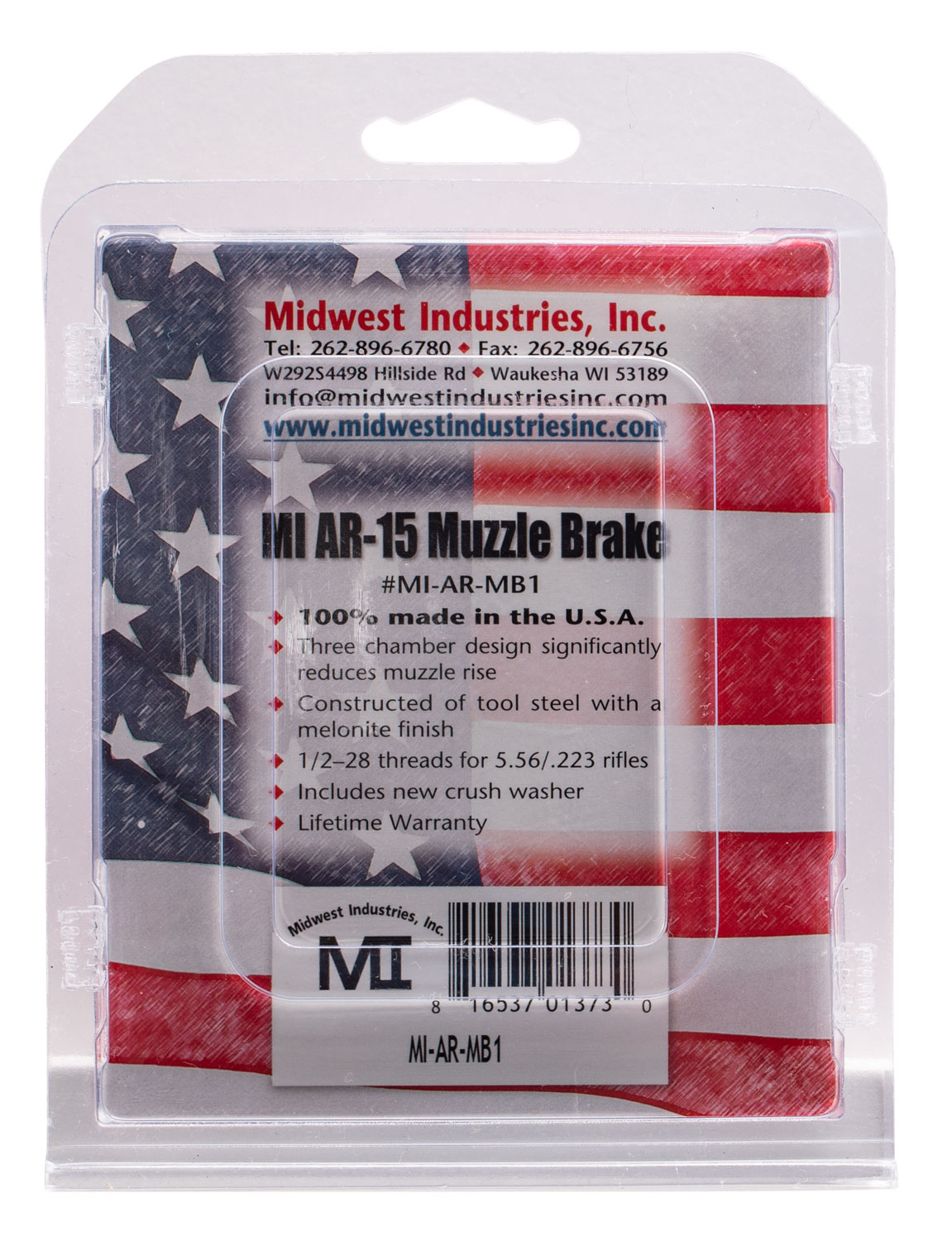 Midwest Industries MIARMB1 Muzzle Brake Black Phosphate Steel with 1/2″-28 tpi Threads for 223 Rem, 5.56x45mm NATO AR-Platform