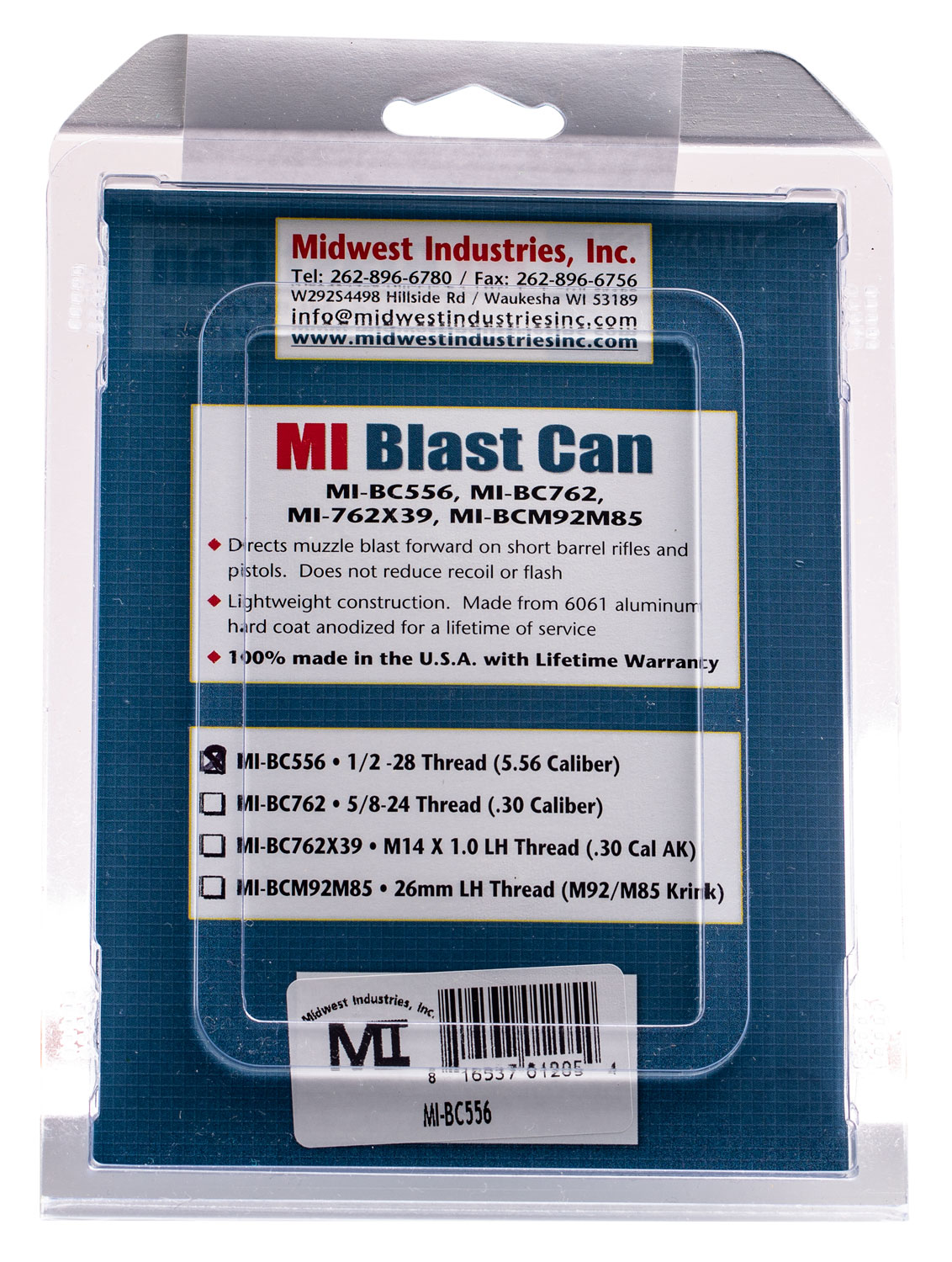 Midwest Industries MIBC556 Blast Can Black Hardcoat Anodized 6061-T6 Aluminum with 1/2″-28 tpi Threads, 3.38″ OAL & 1.20″ Diameter for 5.56x45mm NATO AR-Platform