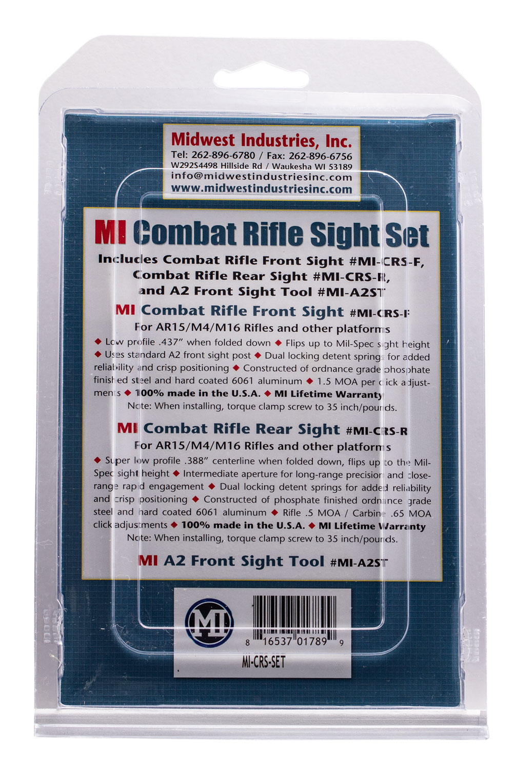Midwest Industries MICRSSET Combat Rifle Sight Set Black Flip Up Front & Rear for AR-15, M16, M4