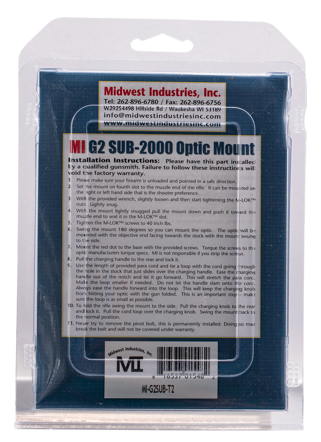 Midwest Industries MIG2SUBT2 Gen2 Sub 2000 Mini Optic Mount Matte Black