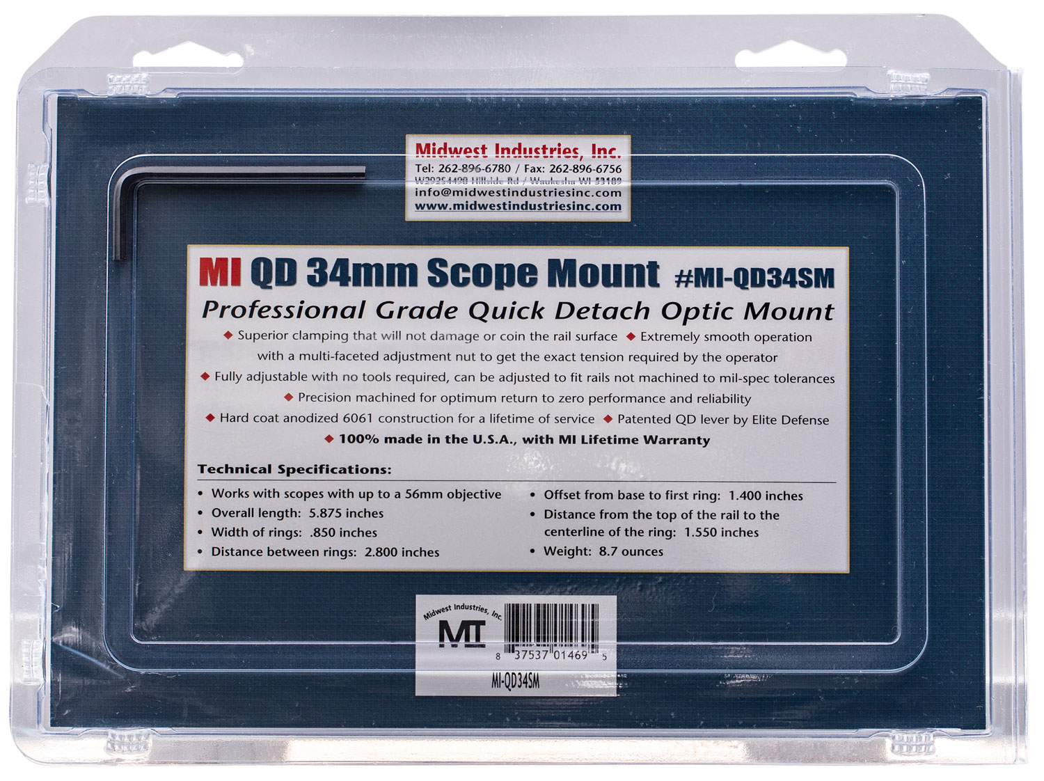 Midwest Industries MIQD34SM 34mm QD Scope Mount/Ring Combo Black Hardcoat Anodized