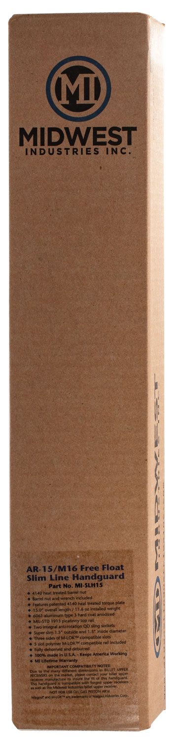 MIDWEST INDUSTRIES INC MISLH15 Slimline AR-15 6061 Aluminum Black Hard Coat Anodized 15″
