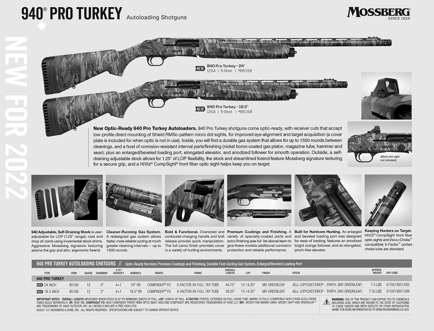 Mossberg 85156 940 Pro Turkey 12 Gauge with 24″ Barrel, 3″ Chamber, 4+1 Capacity, Overall Mossy Oak Greenleaf Finish & Synthetic Stock Right Hand (Full Size)