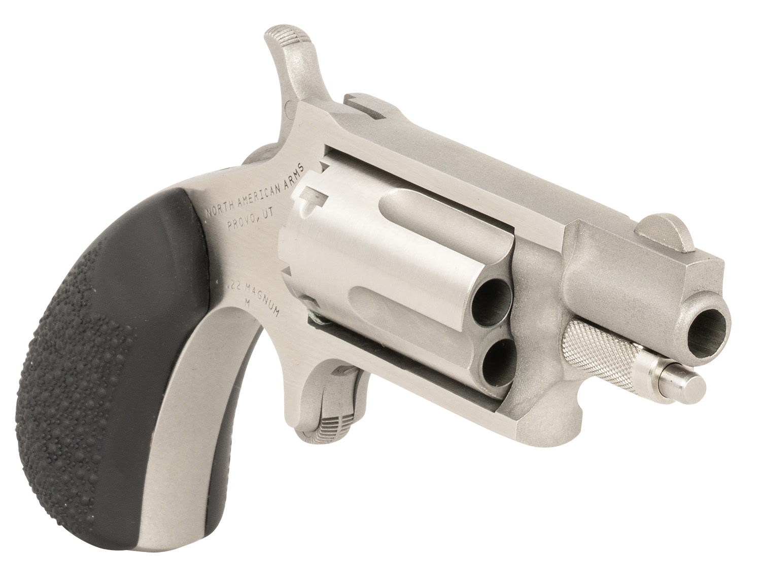 North American Arms 22MSGRCHSS Mini-Revolver Carry Combo 22 WMR 5 Shot 1.13″ Barrel, Stainless Steel Barrel/Cylinder/Frame, Black Rubber Grip, Includes Exclusive Holster Package