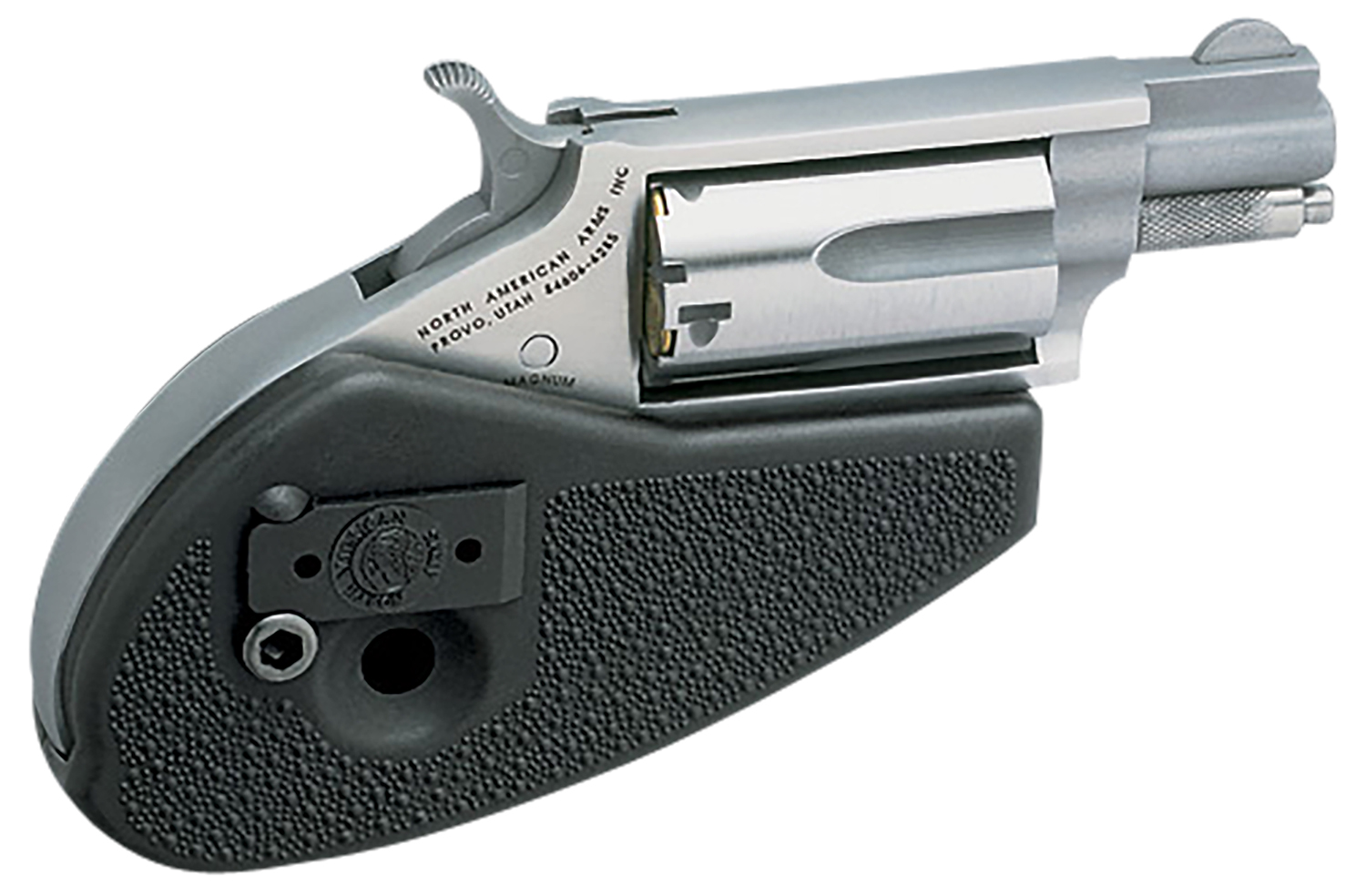 North American Arms 22MSHG Mini-Revolver 22 WMR 5 rd 1.13″ Barrel, Overall Stainless Steel Finish, Black Synthetic Holster Grip