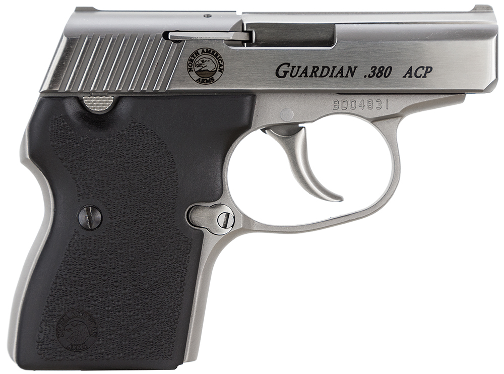 North American Arms 380GUARDIAN Guardian 380 ACP Caliber with 2.50″ Barrel, 6+1 Capacity, Overall Stainless Steel Finish, Serrated Slide & Black Rubber Grip