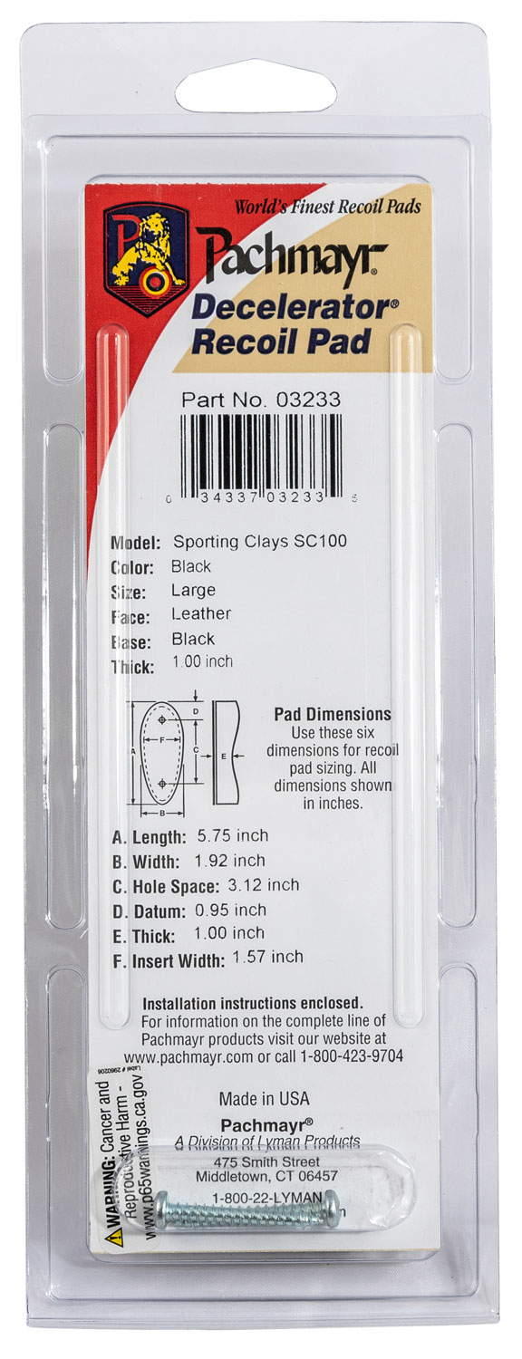 Pachmayr 03233 SC100 Decelerator Sporting Clay Recoil Pad Large Black Rubber 1″ Thick