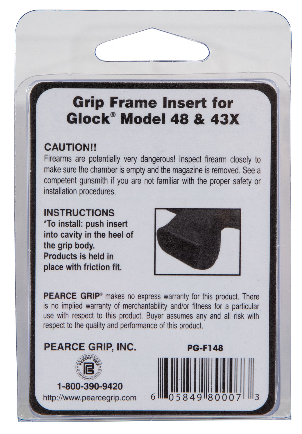 Pearce Grip PGFI48 Grip Frame Insert Compatible w/Glock 43X/48, Black Polymer