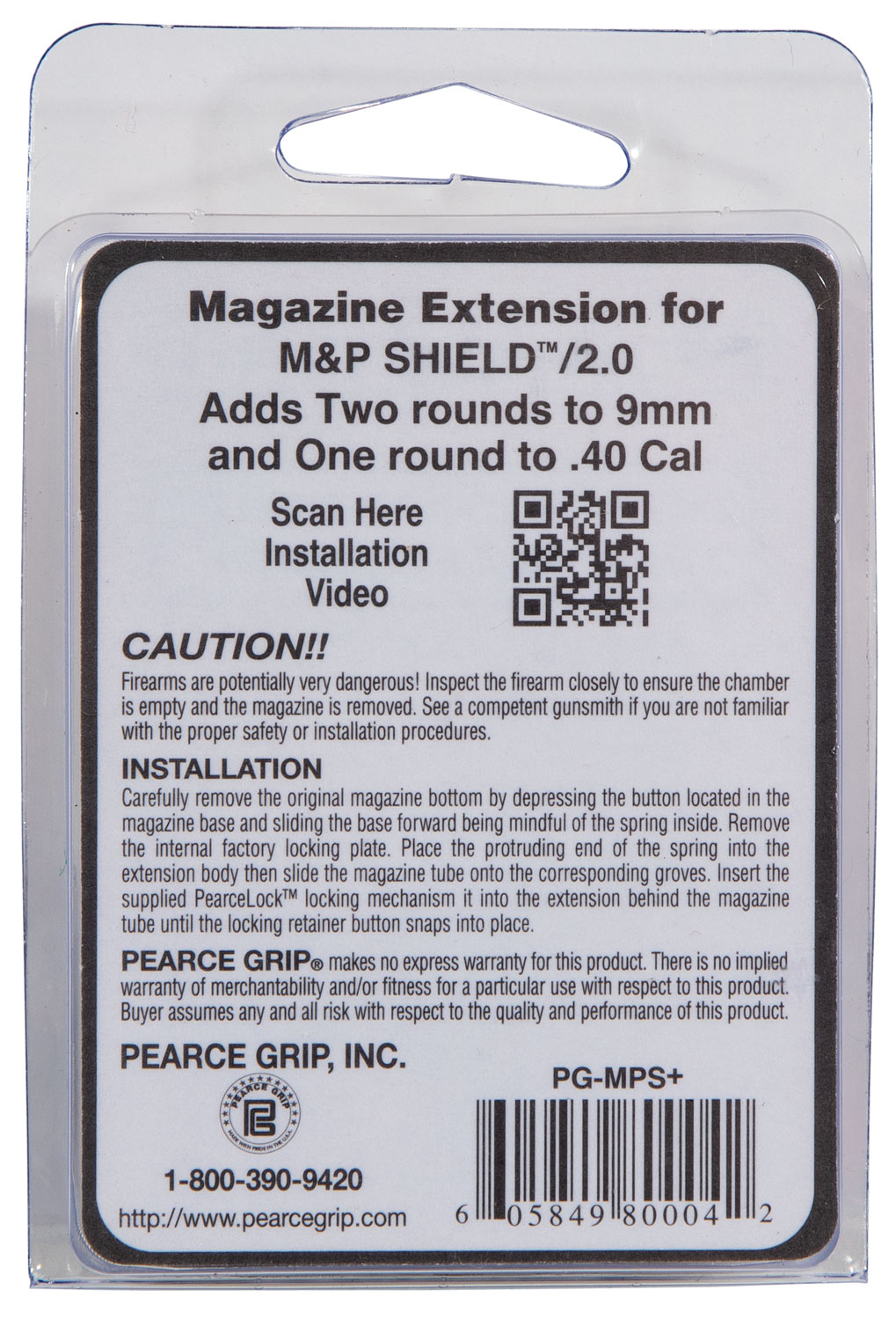 Pearce Grip PGMPS+ Magazine Extension made of Polymer with Texture Black Finish & 1″ Gripping Surface for S&W M&P Shield, M&P Shield M2.0 (Adds 2rds 9mm Luger, 1rd 40 S&W)