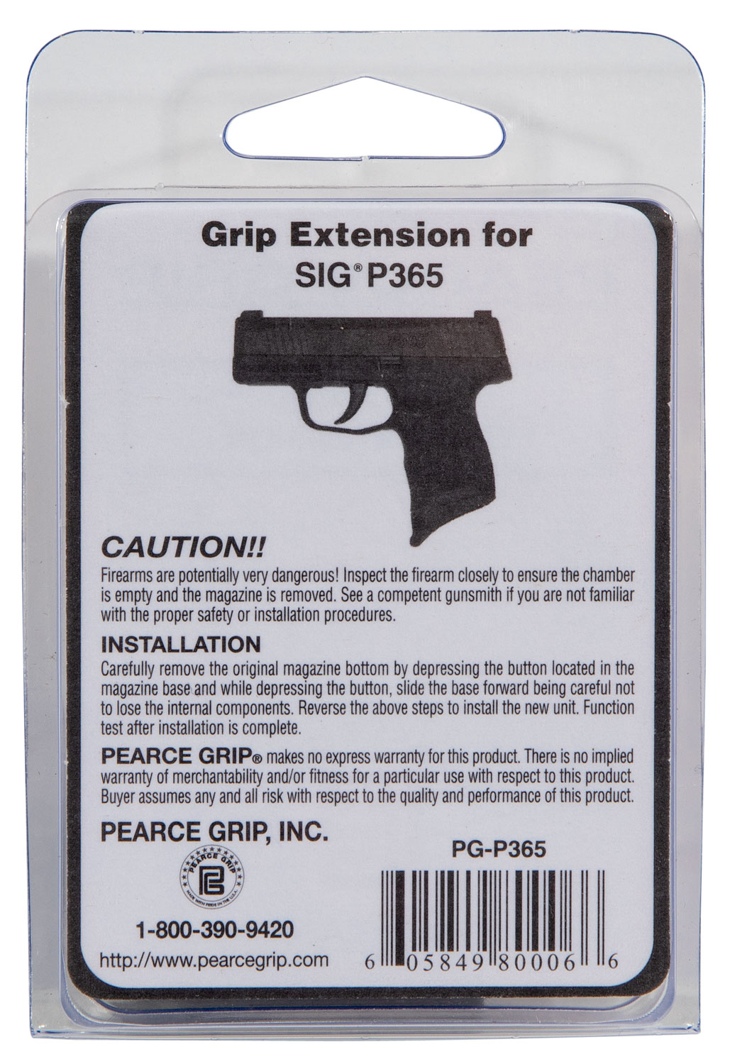 Pearce Grip PG365 Grip Extension made of Polymer with Texture Black Finish & 5/8″ Gripping Surface for Sig P365 with 10rd Mags