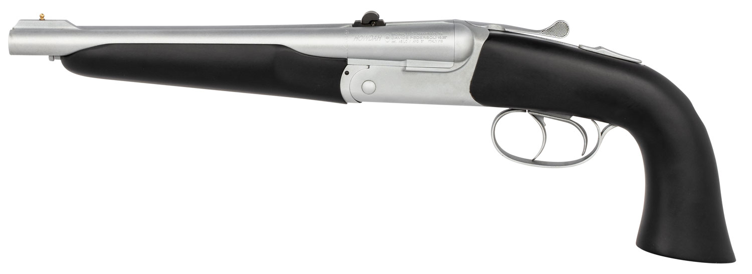 Davide Pedersoli 020S643410 Howdah Alaskan 45 Colt (LC)/410 Gauge 2rd 10.25″ Rifled Barrel, Hard Chromed W/Rubber Overmold Wood, Ramp Front/Folding Leaf Rear Sights